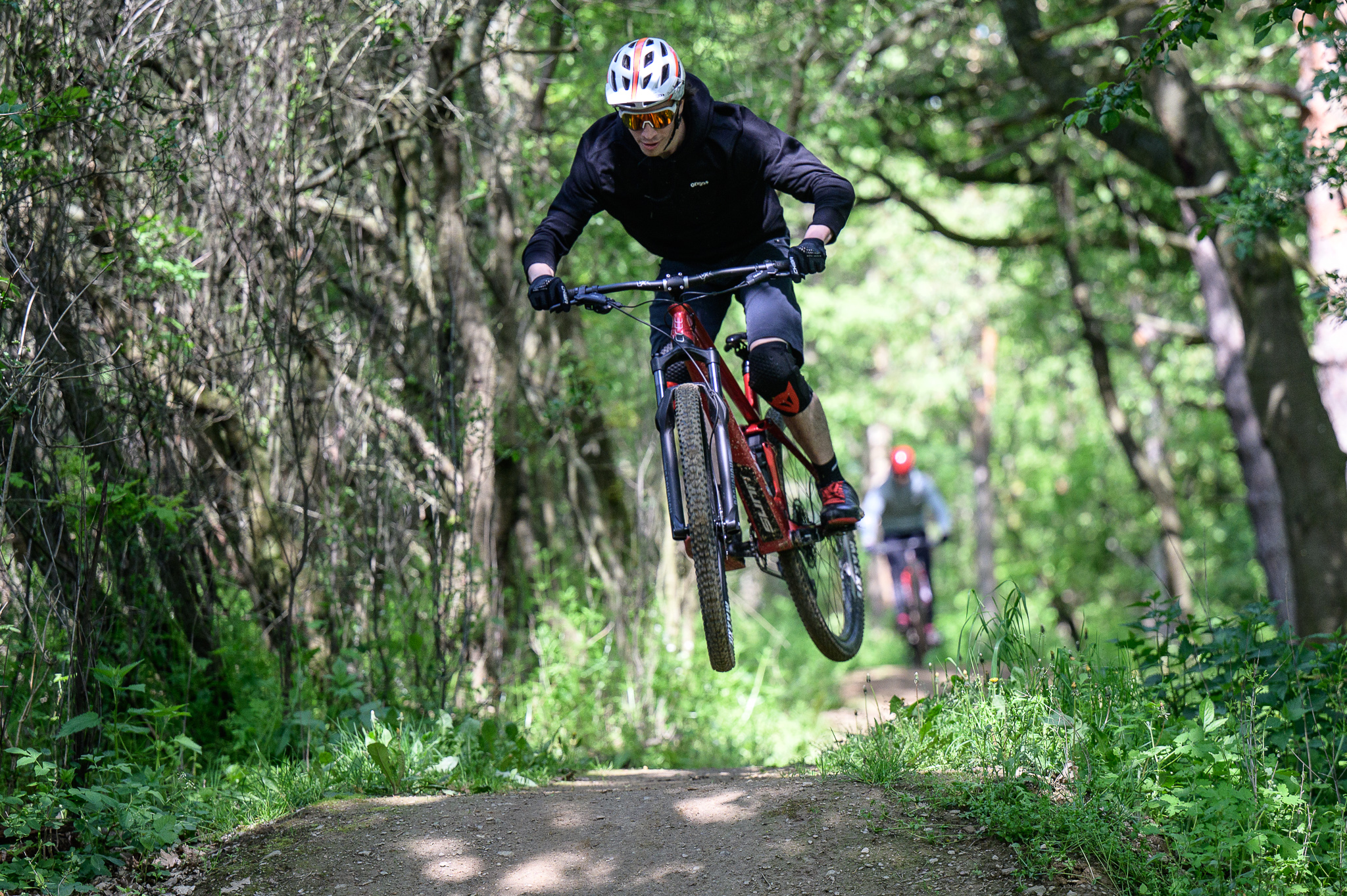 Poďme si ale rozobrať, ako sa tento bike správa v praxi. Keďže sa rozprávame o biku, ktorý je v cenovej hodnote do 3 tisíc eur, je prirodzené, že na bicykli sú použité “základné“ komponenty. To ale neznamená, že si nemôžete dovoliť vyskúšať aj prudšie, technickejšie traily alebo víkendové jazdenie v bike parku.