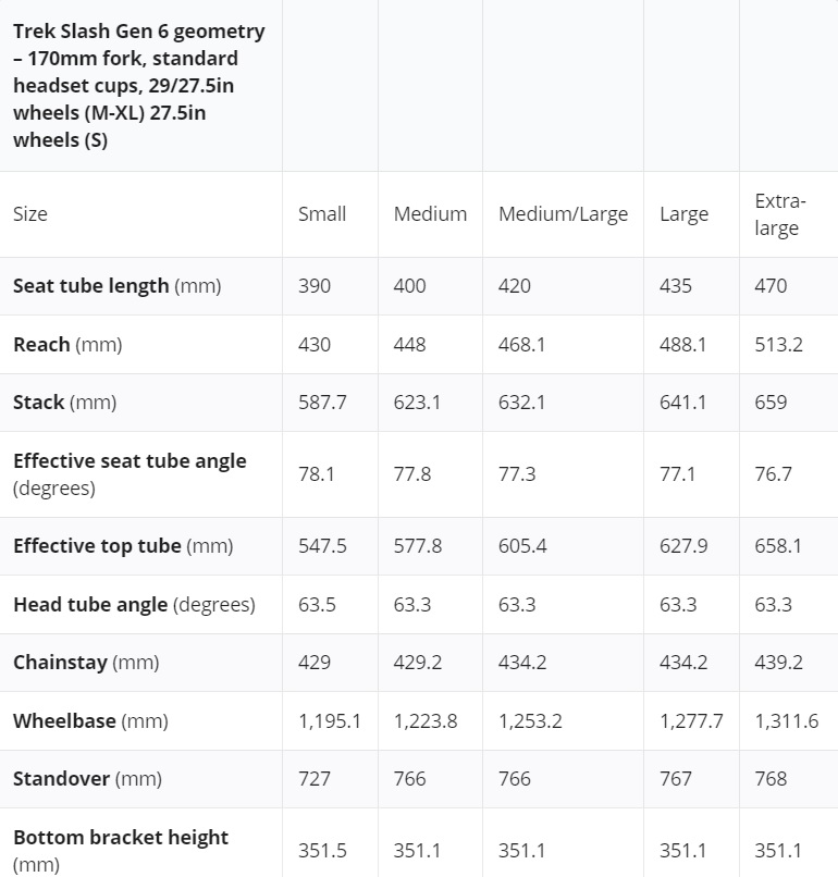Je zaujímavé vidieť, že Trek urobil Slash lenivším, ale nie dlhšie. Tieto hodnoty predstavujú spôsob, akým sa bicykel predáva. Ak nasadíte 29-palcové koleso alebo vymeníte náhlavnú súpravu, zmení sa aj geometria.