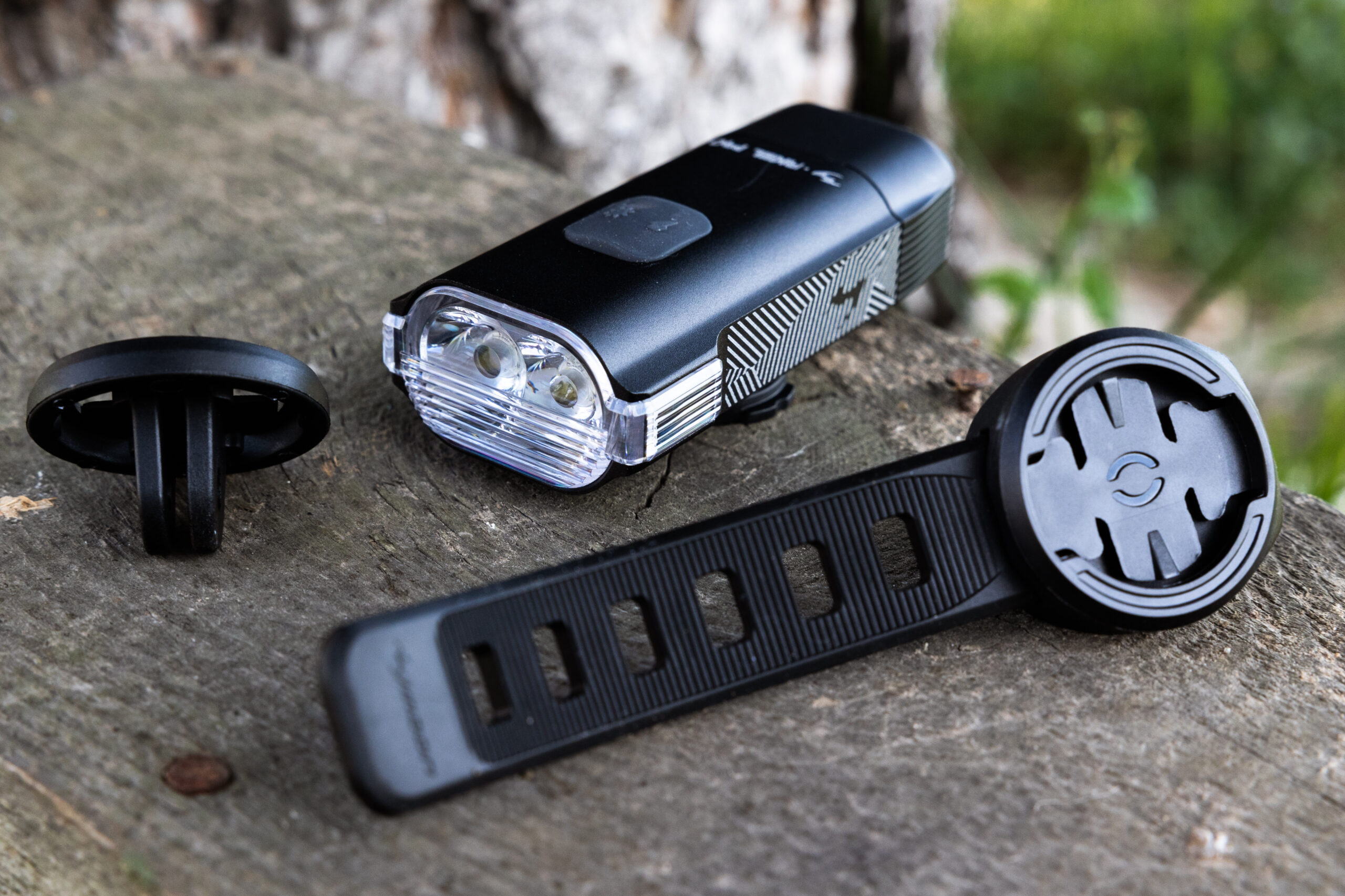 Testovali sme dvojicu naozaj silných svetiel predného Rigel Pro a zadného Helix Sense 450. Rigel Pro je predné biele svetlo a v jeho balení nájdete dva typy držiakov – jeden na riadidlá a jeden s typickým Gopro úchytom.