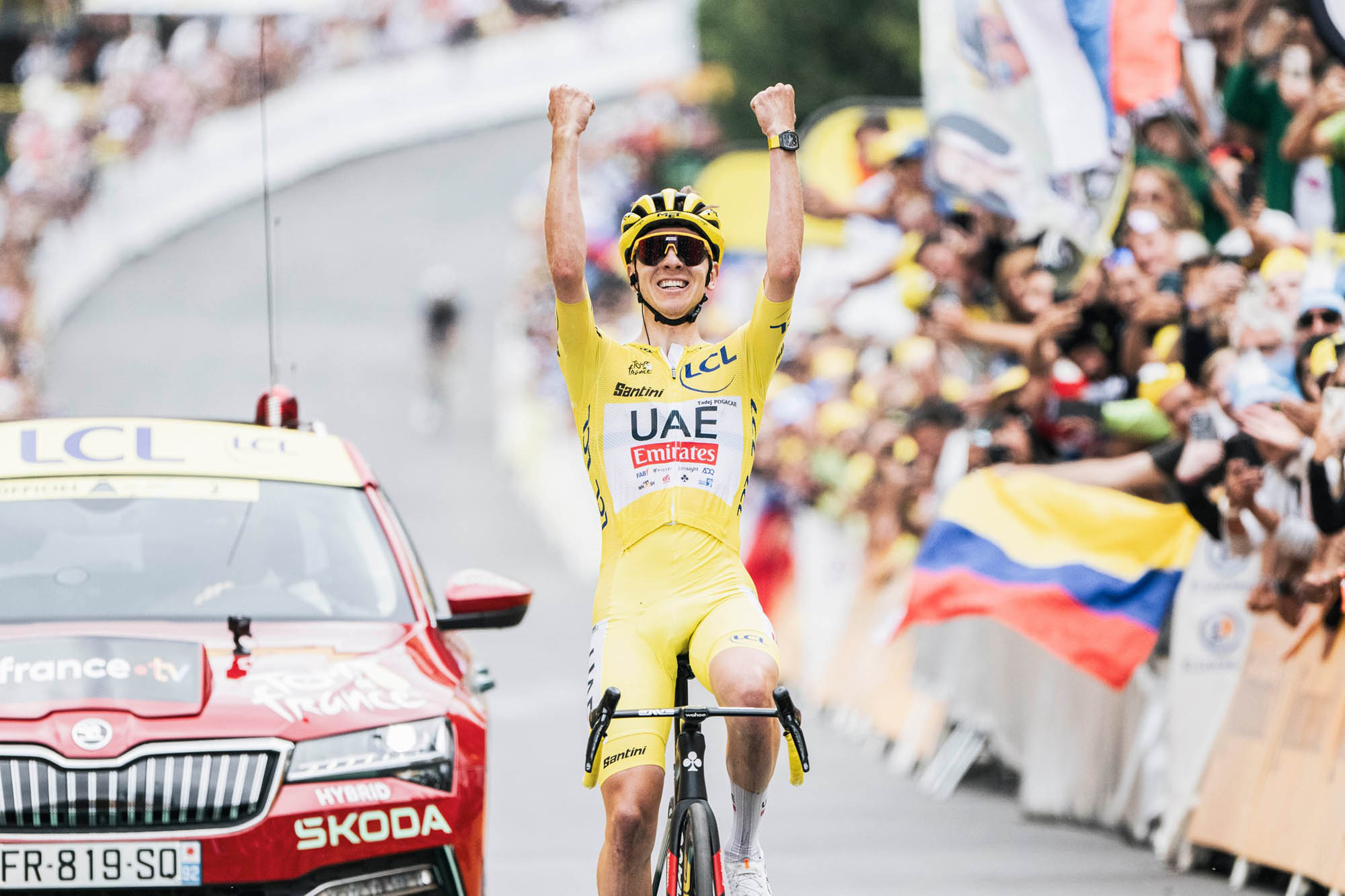 Slovinec suverénne zvíťazil na vrcholoch Pla d’Adet, Plateau de Beille, Isola 2000 a Col de la Couillole, pričom vo všetkých štyroch stúpaniach prekonal svojimi časmi historické rekordy. Okrem tejto štvorice prešiel v rekordnom čase aj Col du Galibier, aj keď etapa sa na jeho vrchole nekončila.