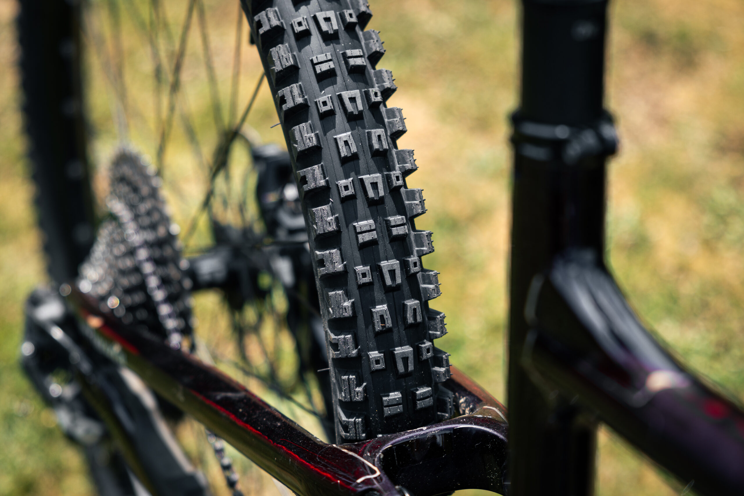 S nasadením plášťov sme problém nemali a prvé čo si na nich všimnete sú naozaj vysoké štuple a agresívny dezén, ktorý je predzvesťou zábavy v bikeparkoch a na zjazdových tratiach. Na pohľad mierne pripomínajú plášť Assegai od Maxxisu.