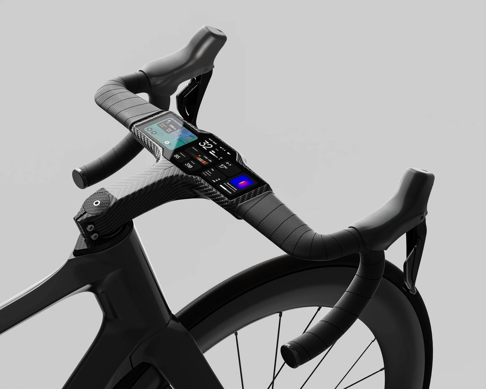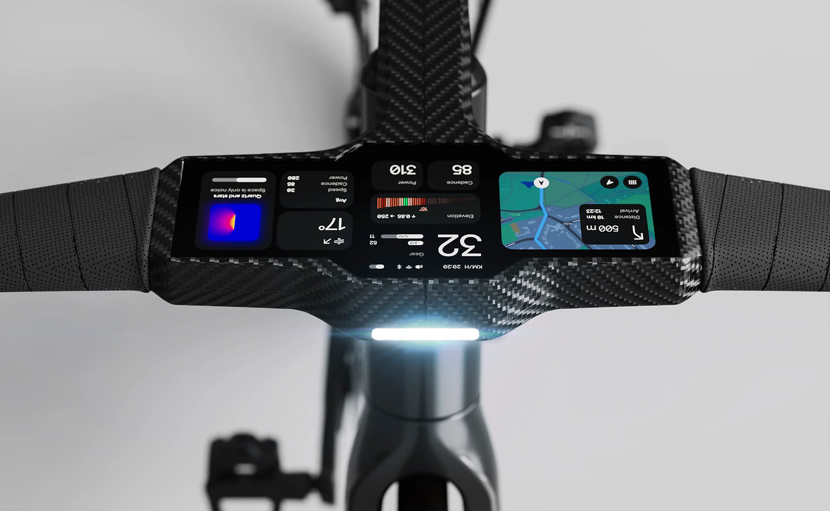 Z tohto nápadu vznikol koncept kokpitu, kde je všetko plne integrované – displej, batéria, svetlo aj zvonček sú zabudované priamo do riadidiel.