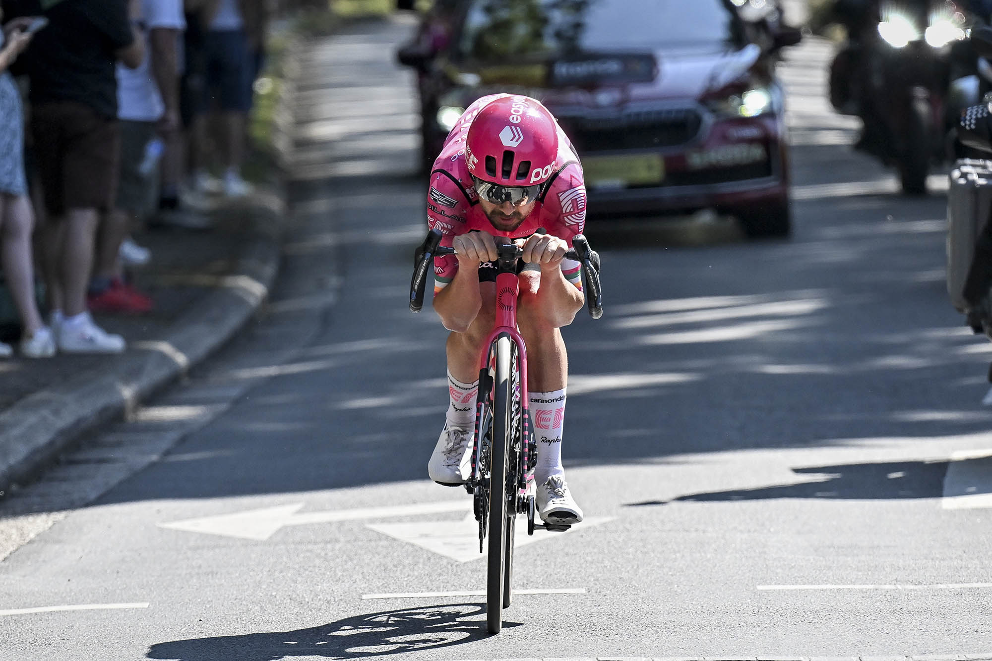 Healy jazdí v extrémne aerodynamickej pozícii, ktorú bežní cyklisti len ťažko napodobnia.