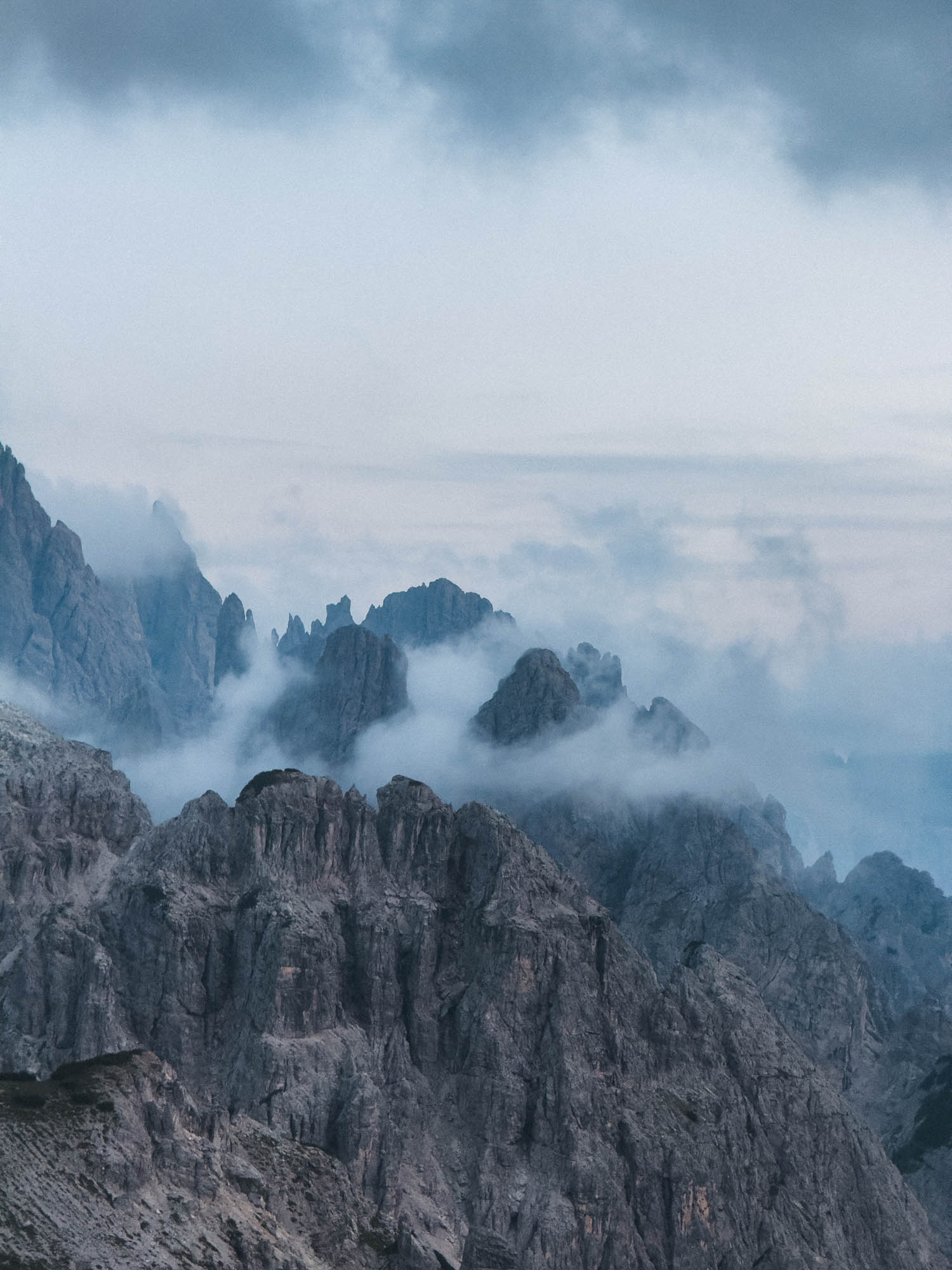 Ráno nás čakalo nezabudnuteľné divadlo svetla, hmly a dažďa. Každú chvíľu sa scenéria menila, hory sa ukrývali a znovu vynárali. Bolo to, akoby Dolomity hrali vlastné divadelné predstavenie, určené len pre tých, čo si privstali.