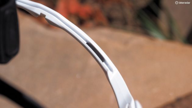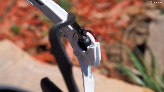 Nosník sa dá nastaviť do šírky, a nožičky do dĺžky. Obe sú pokryté gumou, ktorú Oakley volá Unobtanium. Meno je to trochu zbytočne sci-fi, no samotný materiál funguje dobre. Ani pri povrchoch, ktoré dokážu vytriasť zo zubov plomby sa okuliare nepohnú, a nevadia im ani potoky potu valiace sa dolu po tvári.