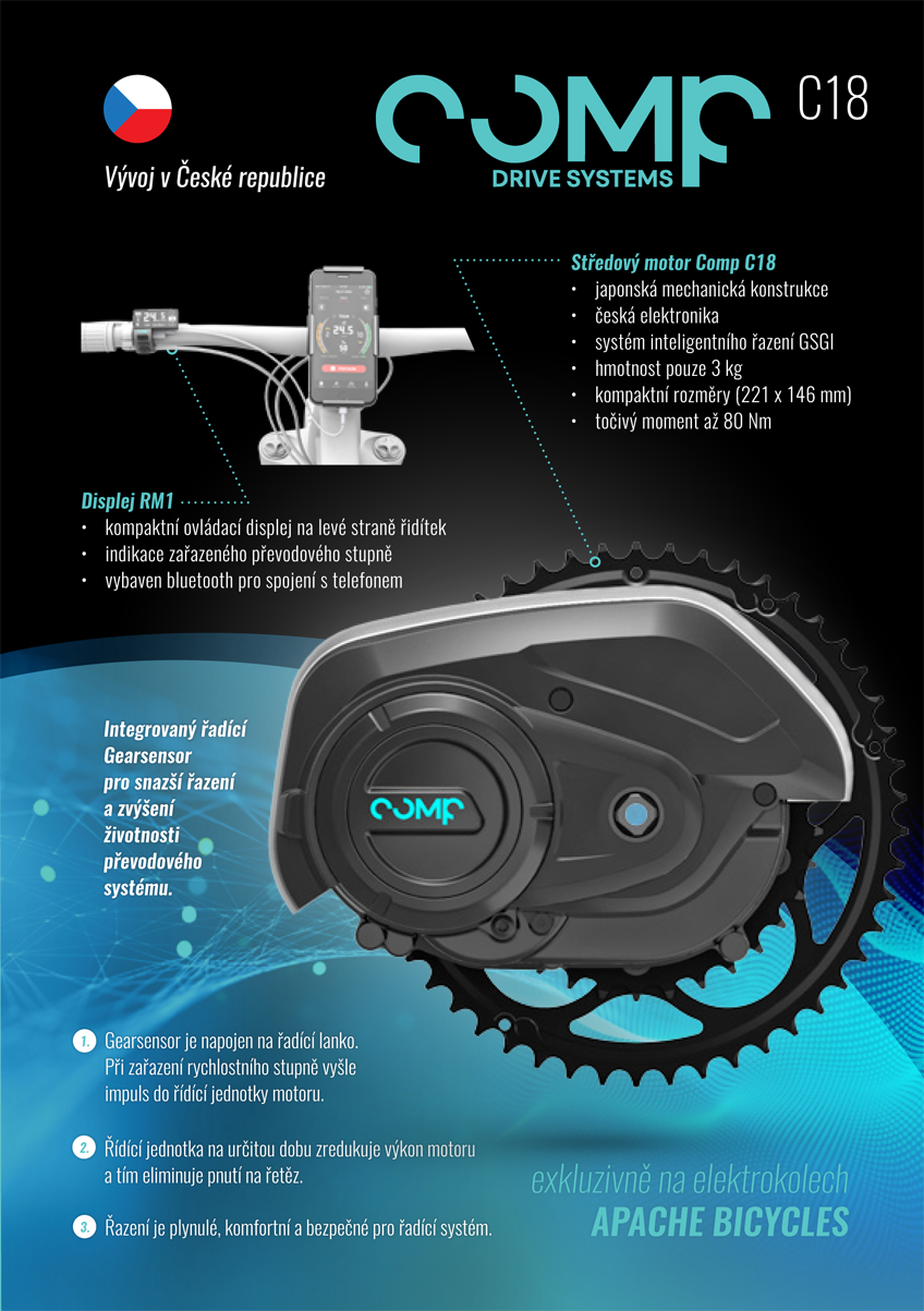Apache predstavuje nový pohon elektrobicyklov CompDrive C18