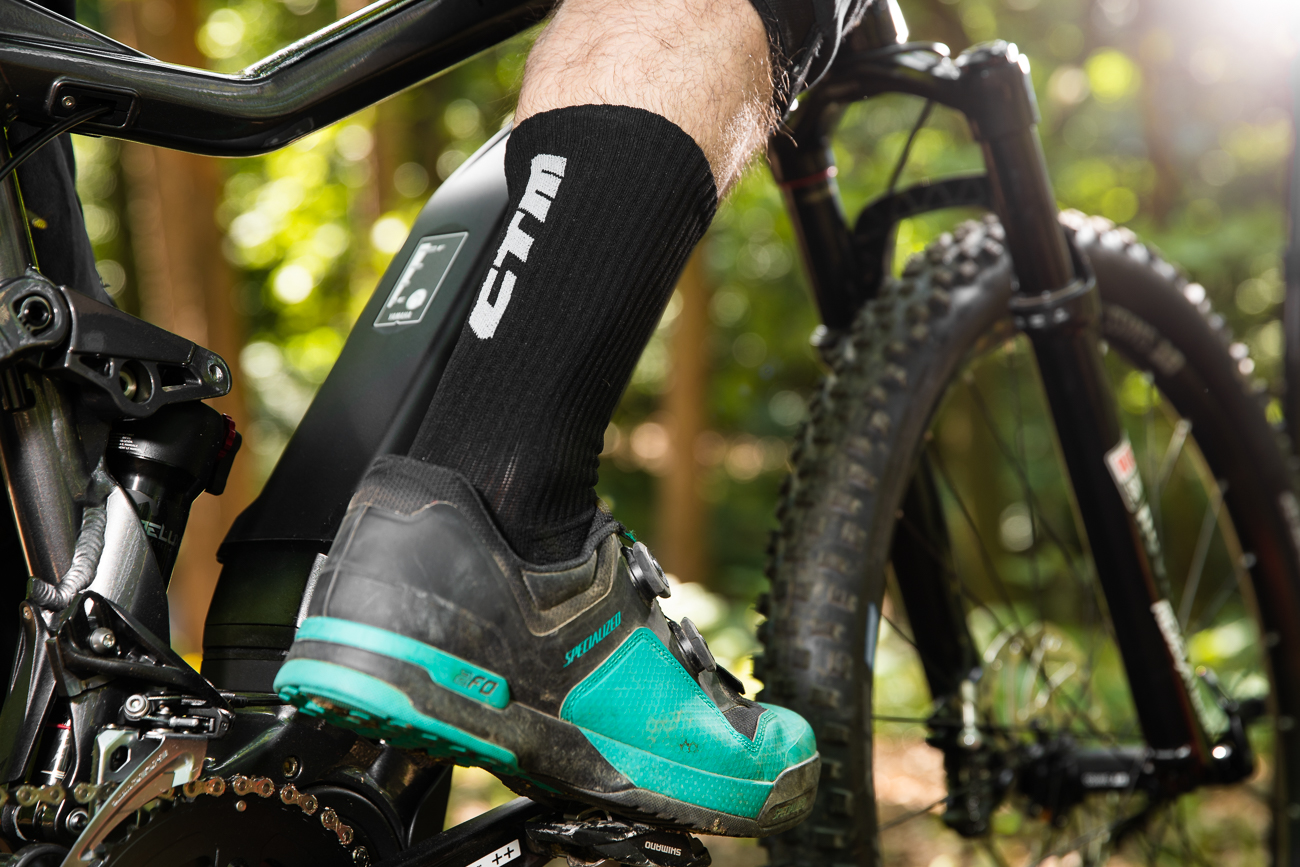 Ich hlavným plusom je však konštrukcia zo 78% funčkného materiálu Coolmax, vďaka ktorej sú na nohe podstatne pohodlnejšie ako iné ponožky od CTM bez nej. Výška je tak akurát enduro-specific (20 označuje výšku v centimetroch) a vďaka čiastočne kompresívnej konštrukcii pri jazde až tak nepadajú.
