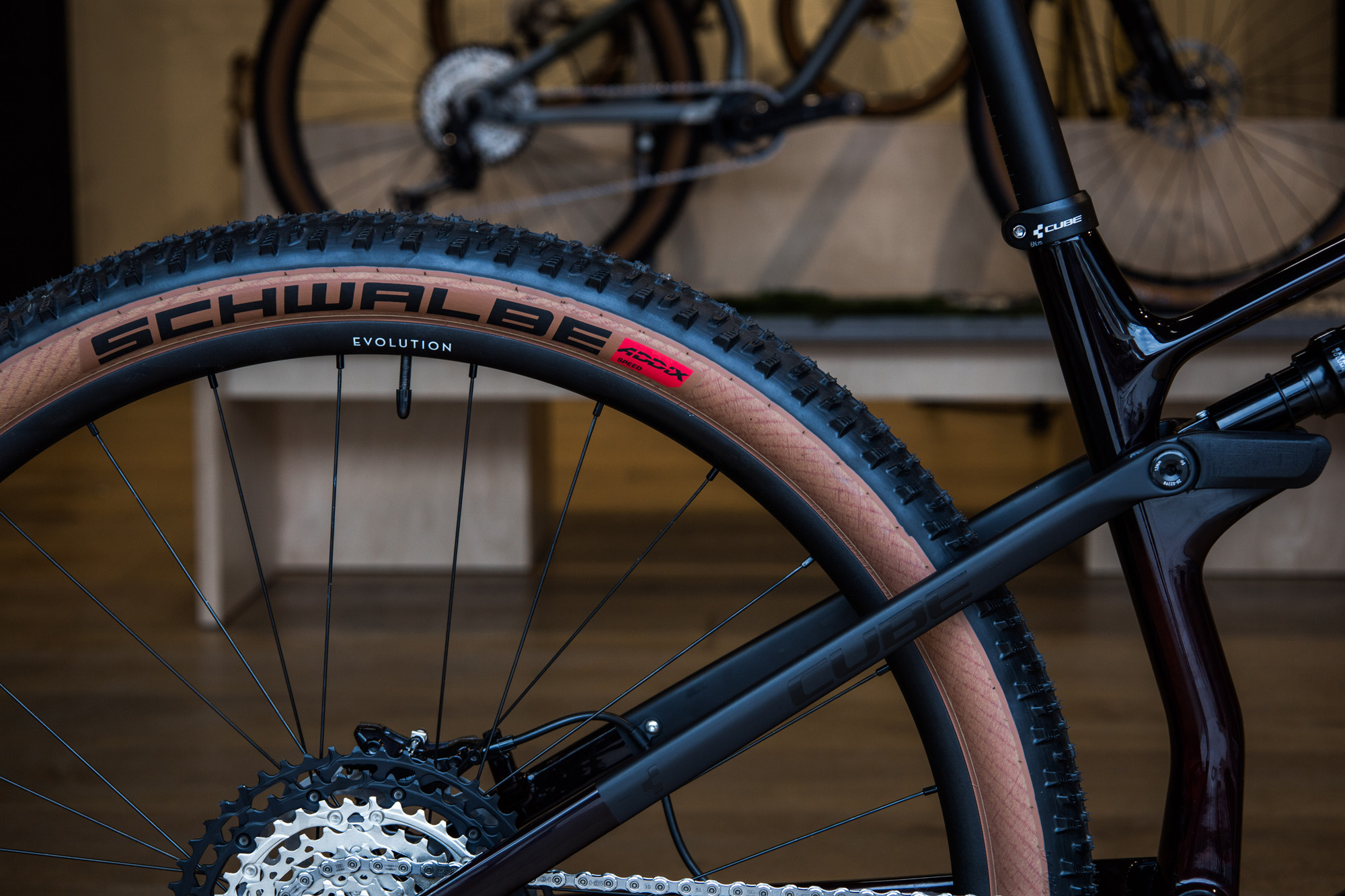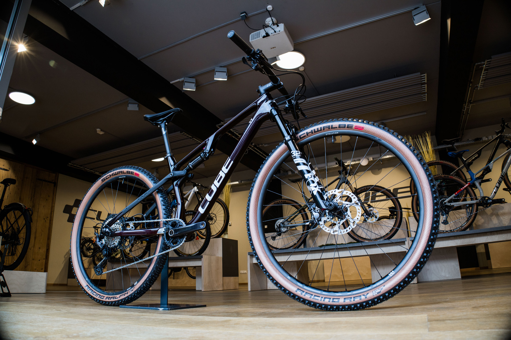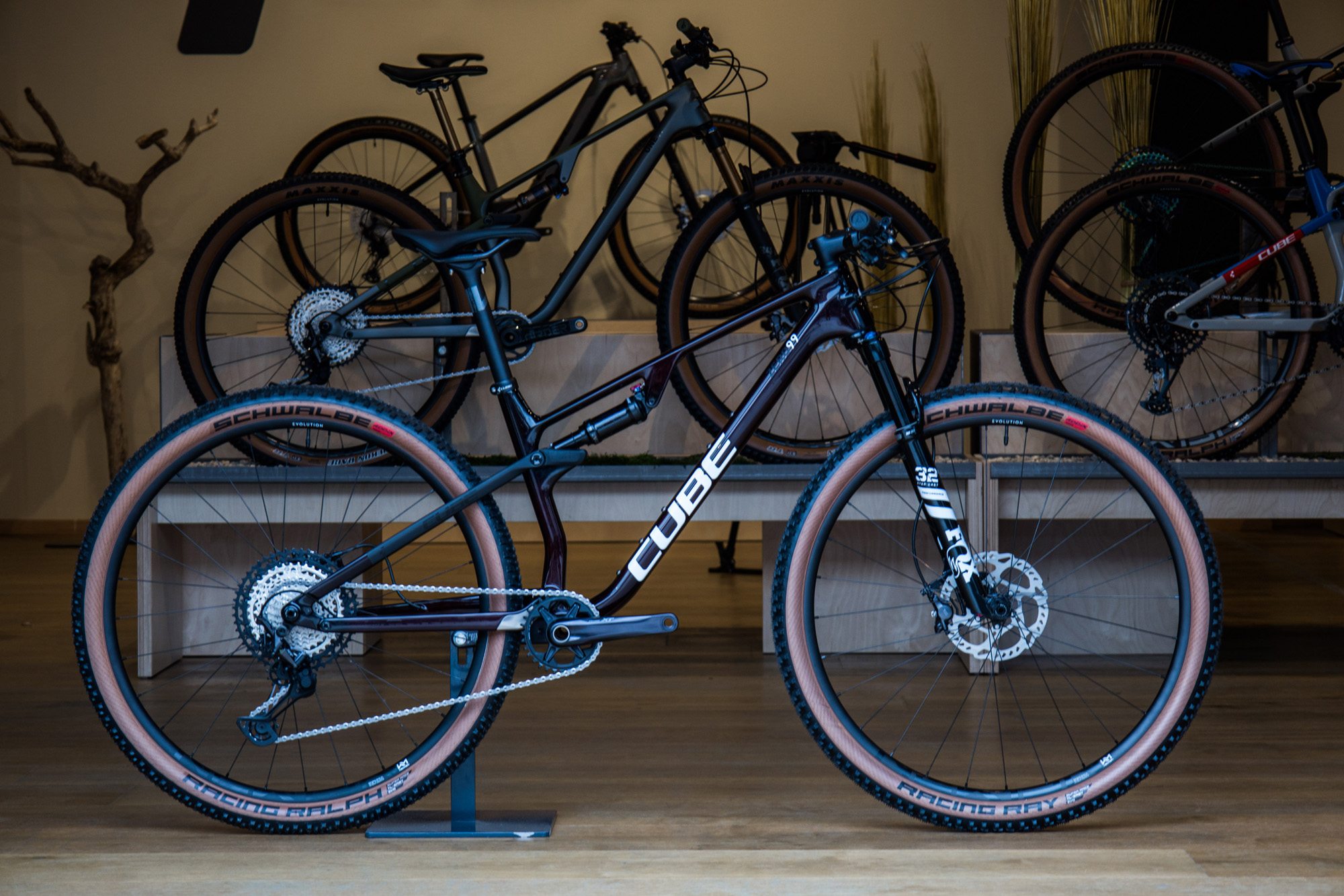 Pretekársky špeciál ZERO99 má 100mm zdvih vpredu aj vzadu a možnosť uzamknutia tlmiča u všetkých modelov. Špeciálne hlavové zloženie umožňuje zľahka meniť geometriu – uhol hlavovej trubky medzi 68° a 67,4°, za čo treba Cube pochváliť, keďže ide o celkom pokrokové hodnoty a hlavový uhol nie je zbytočne strmý – skôr naopak. Agresívnejší AMS ONE11 má zdvih tlmiču 110mm a 120mm zdvihu na vidlici.