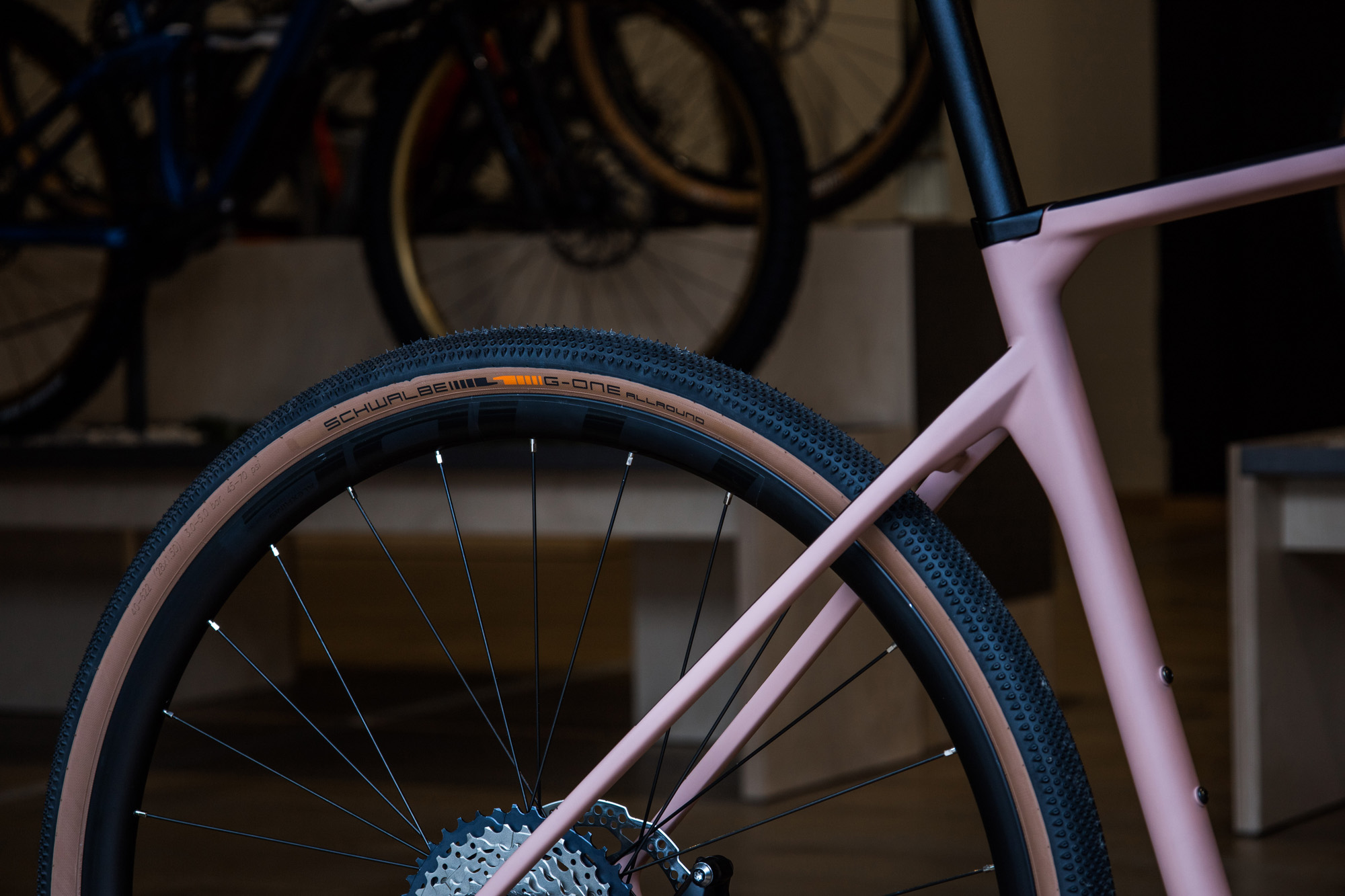 Na 27,5-palcových kolesách Newmen Evolution SL E.G. 30 sú obuté 2,4-palcové plášte Schwalbe Magic Mary (vpredu) a Schwalbe Big Betty (vzadu).