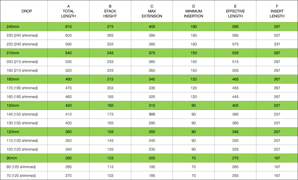Sedlovka s dĺžkou 240mm je navrhnutá pre jazdcov vyšších ako 183 cm alebo jazdiacich na bicykloch s rámom väčším ako veľkosť L. Najdlhšia dostupná teleskopická sedlovka OneUp mala predtým 210 mm. Pomocou podložky možno 90 mm sedlovku nastaviť až na 70 mm.