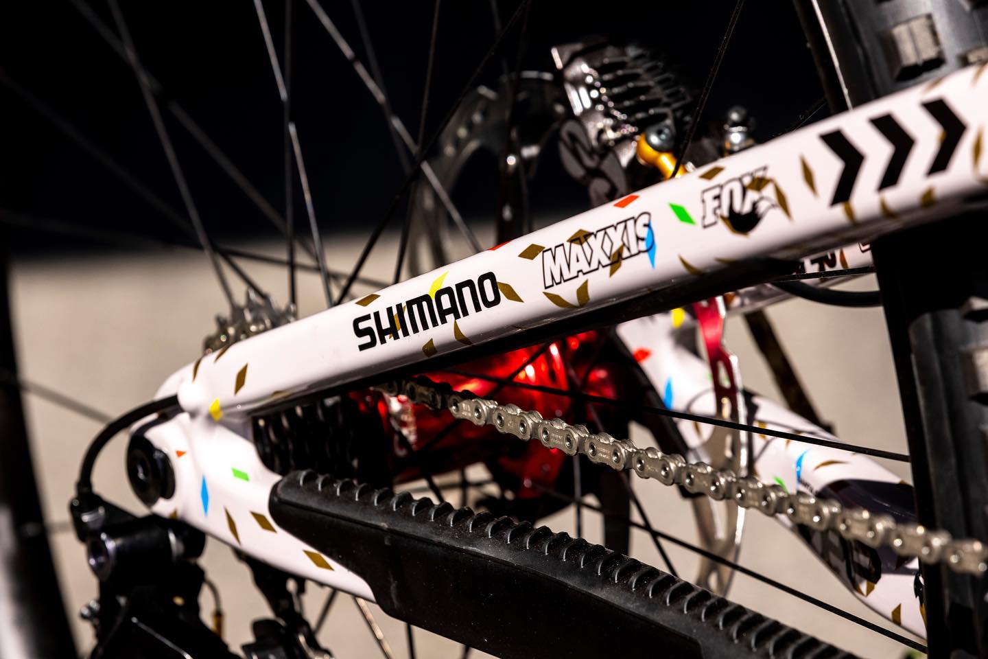 Santa Cruz pripravil pre Grega Minnaara na sezónu 2022 unikátny rám zjazdového modelu V10 s bielym rámom s farebno-zlatými detailami.