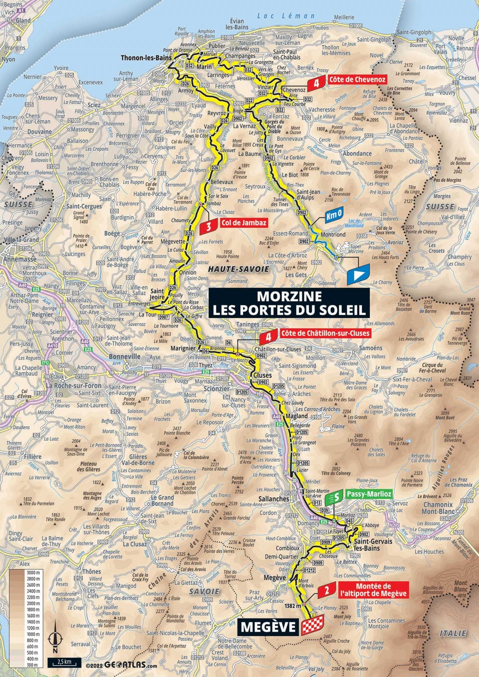 Potrebovali sme pelotón dostať cez hory a zároveň sa vyhnúť väčším prekážkam. Napokon sme prišli s dosť nezvyčajnou trasou cez úžasnú krajinu po cestách nad údoliami v oblasti Ženevského jazera. Do cieľa jazdcov čaká 21-kilometrové stúpanie, no nie je príliš náročné.