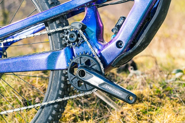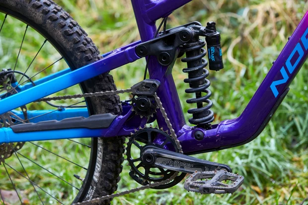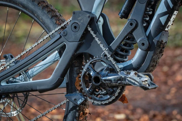 Ak by sa použilo tradičné nastavenie hnacieho ústrojenstva, pedal kickback a pedal bob (odpruženie bicykla sa stláča pri šliapaní), by bol na bicykloch s high pivot značný problém.