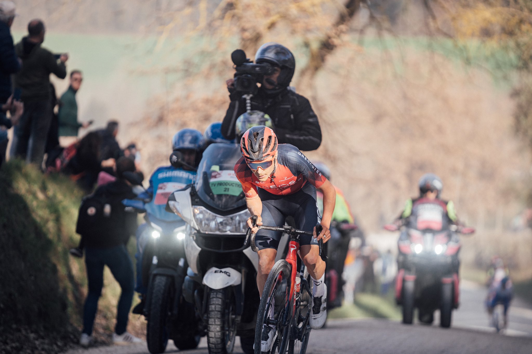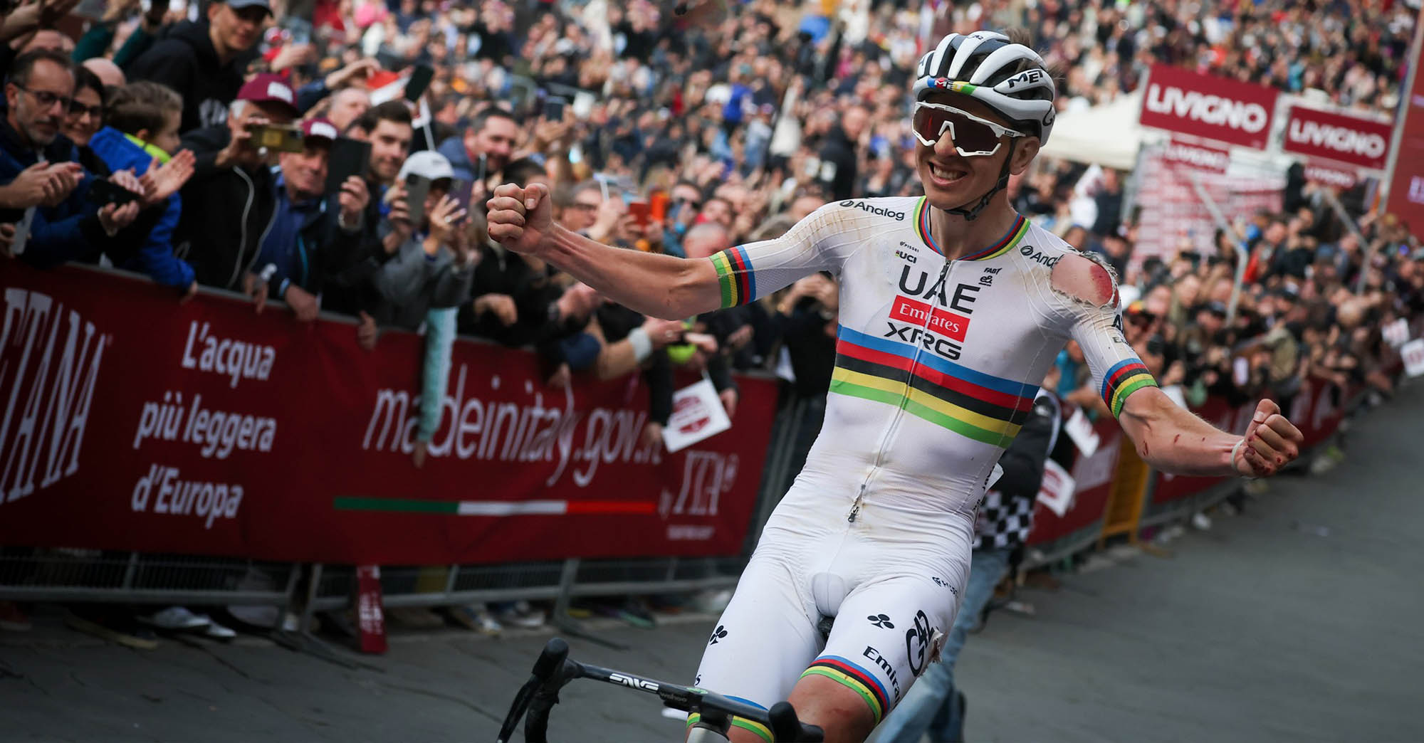 Tadej Pogačar vyhral Strade Bianche 2025 aj napriek tvrdému pádu. Foto: Niccolò Rainone / @im.rino
